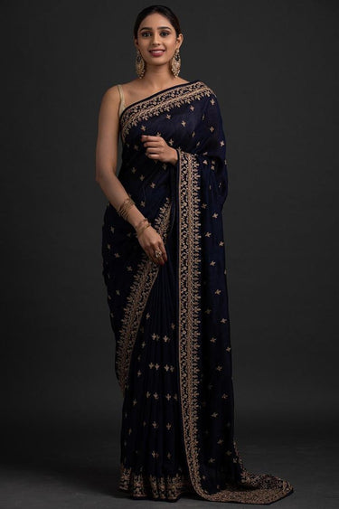 Art Silk Fabric Party Look Navy Blue Color Delicate Saree