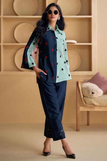Art Silk Fabric Party Wear Navy Blue Color Embroidered Designer Co-Ord Set