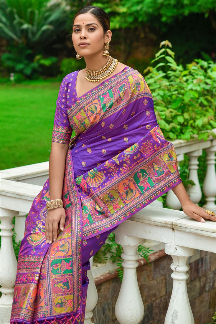 Art Silk Fabric Purple Color Fantastic Weaving Work Saree