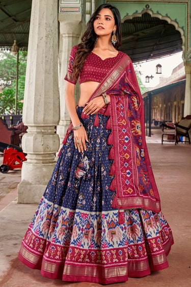 Art Silk Fabric Sangeet Wear Printed 3 Piece Lehenga Choli In Navy Blue Color