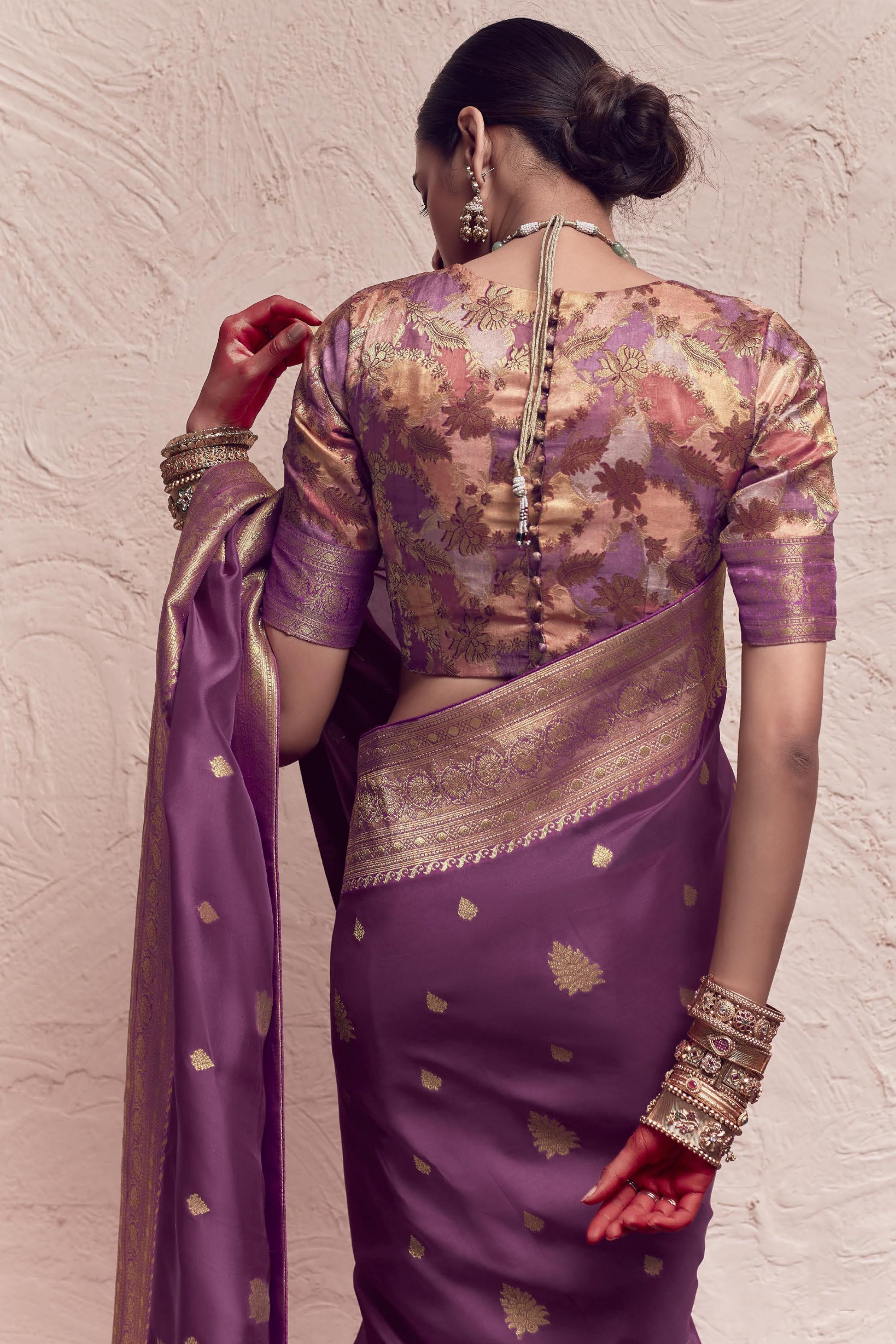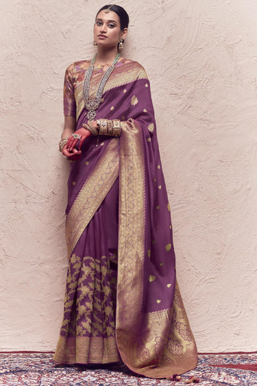 Art Silk Fabric Weaving Work Purple Color Sangeet Wear Trendy Saree