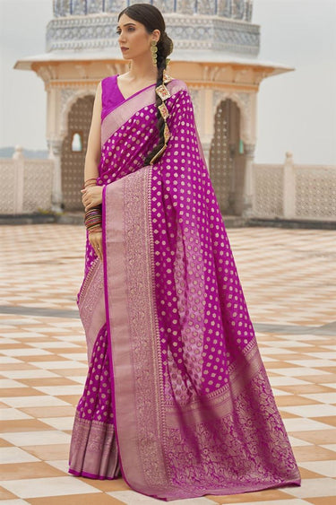 Art Silk Fabric Wedding Wear Magenta Color Fancy Weaving Work Saree