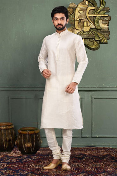 Art Silk Fabric White Color Festive Wear Readymade Men Stylish Kurta Pyjama