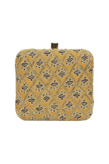 Art Silk Hand Work Mustard Color Beatific Clutch