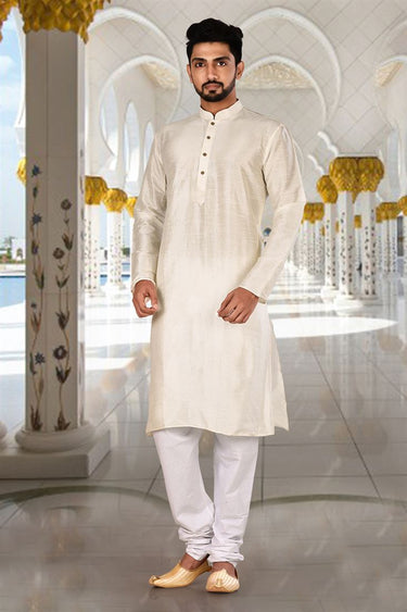 Art Silk Off White Magnificent Readymade Men Kurta Pyjama For Sangeet Wear