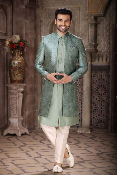 Art Silk Olive Color Readymade Designer Men Indo Western