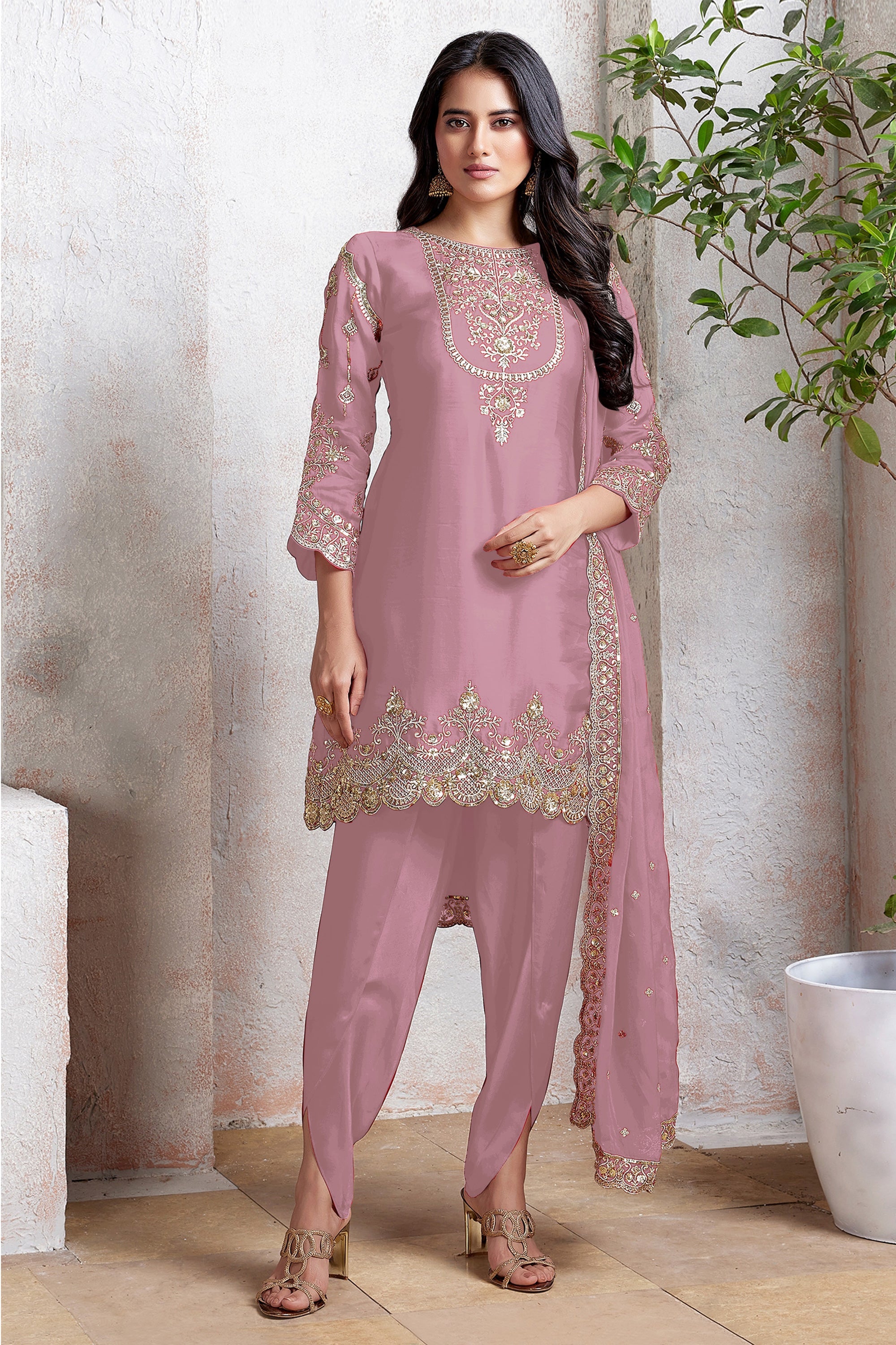 Experience timeless Indian tradition with a fashionable edge in this Reach Color Designer Art Silk Patiala Suit. This elegant piece features premium art silk fabric that provides a lustrous base for the beautifully embroidered patterns. The Patiala pants add flow and flair, giving the outfit a regal appearance while offering all-day comfort during functions and festivities. Ideal for those looking to make a subtle yet graceful statement, this outfit promises to highlight your ethnic charm effortlessly. Please dry clean only to maintain its quality and note that slight color differences may appear in person.