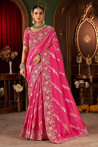 Art Silk Rani Embroidered Border Work Saree For Sangeet Wear