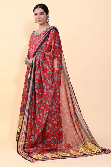 Art Silk Red Color Ingenious kalamkari Printed Gown With Dupatta
