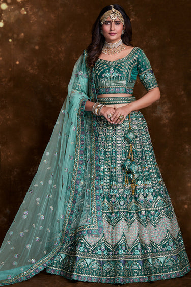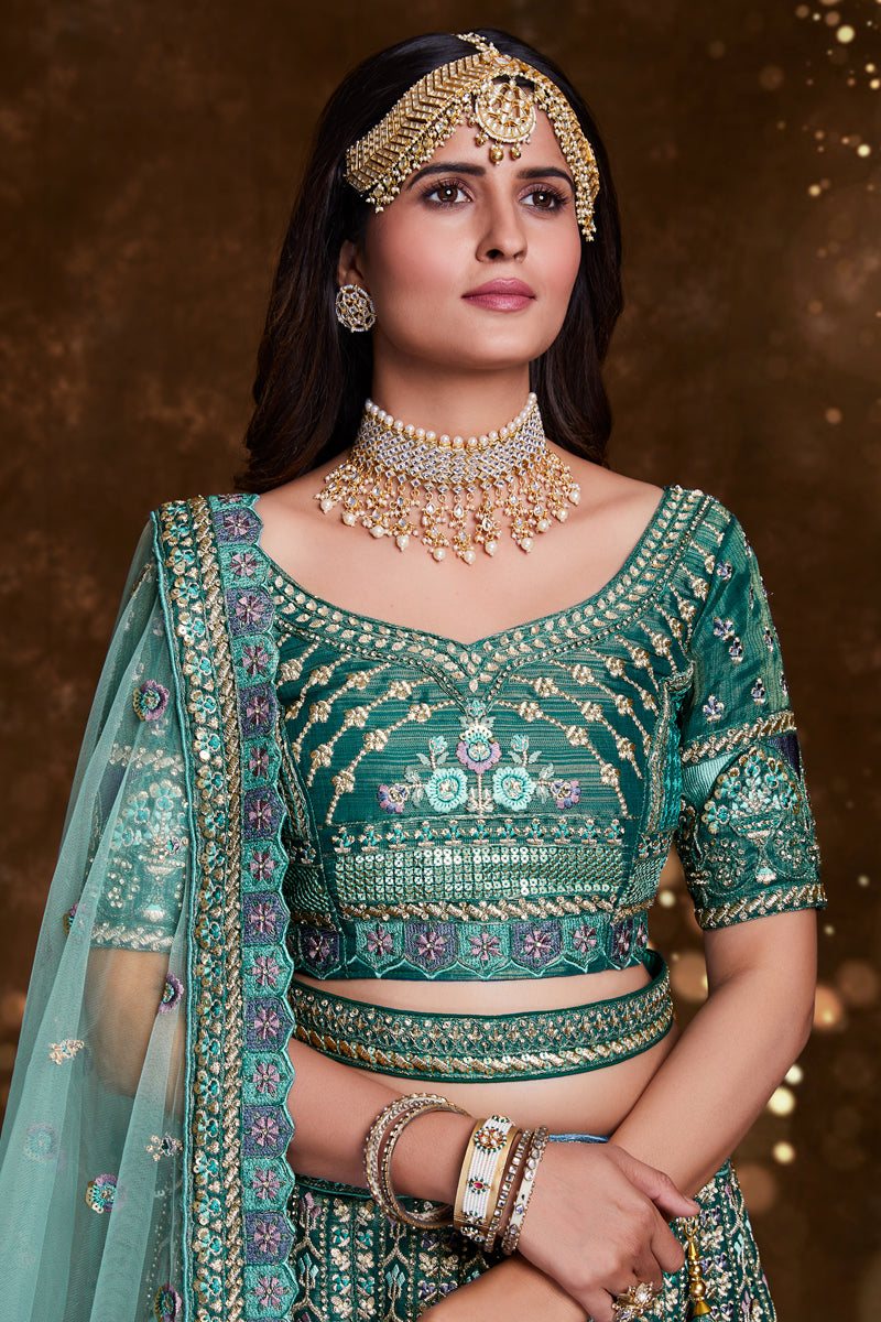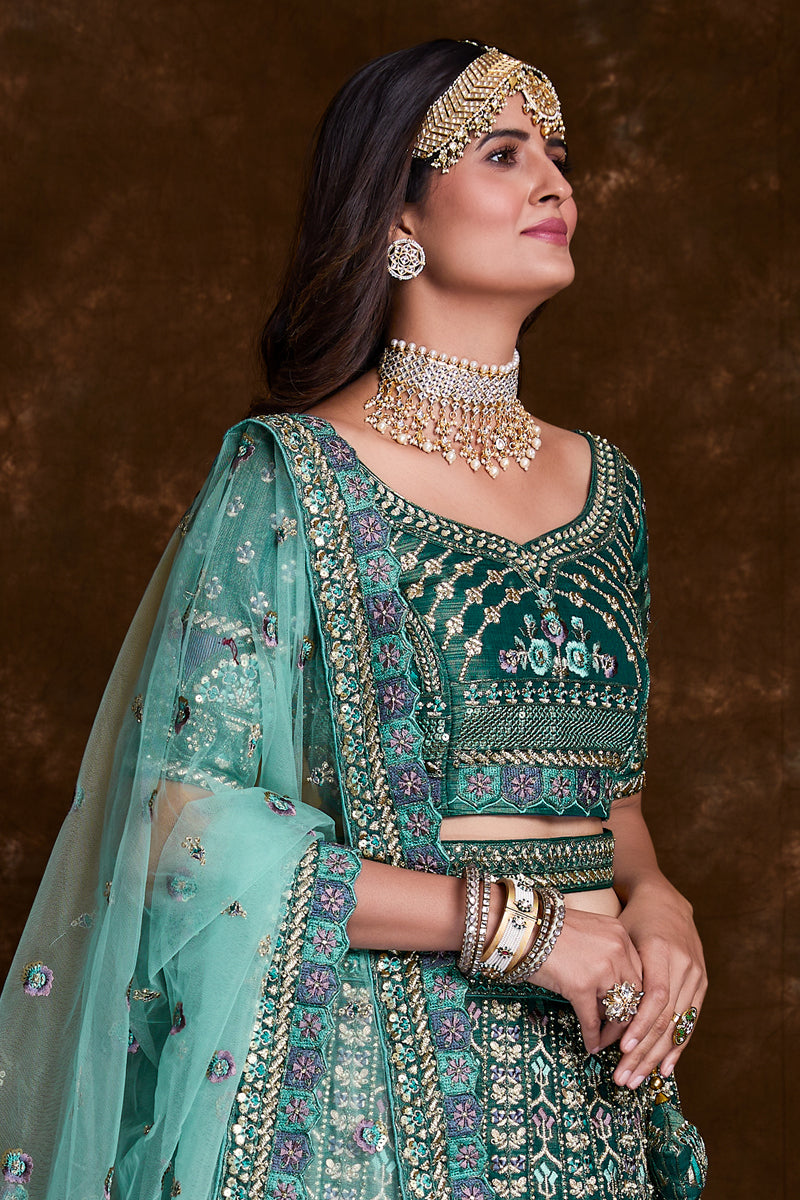 Art Silk Sangeet Wear Lehenga With Embroidery Work In Teal
