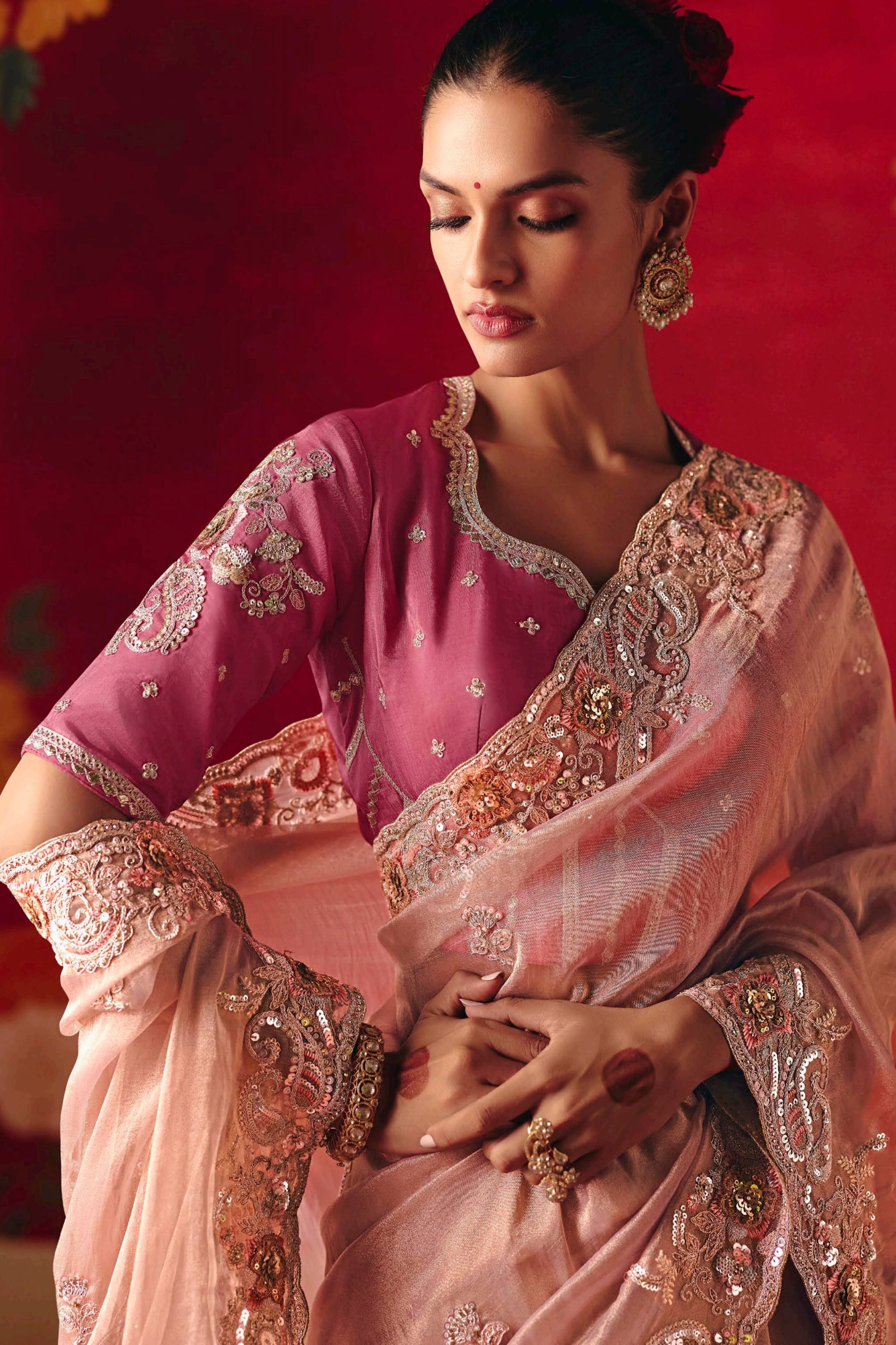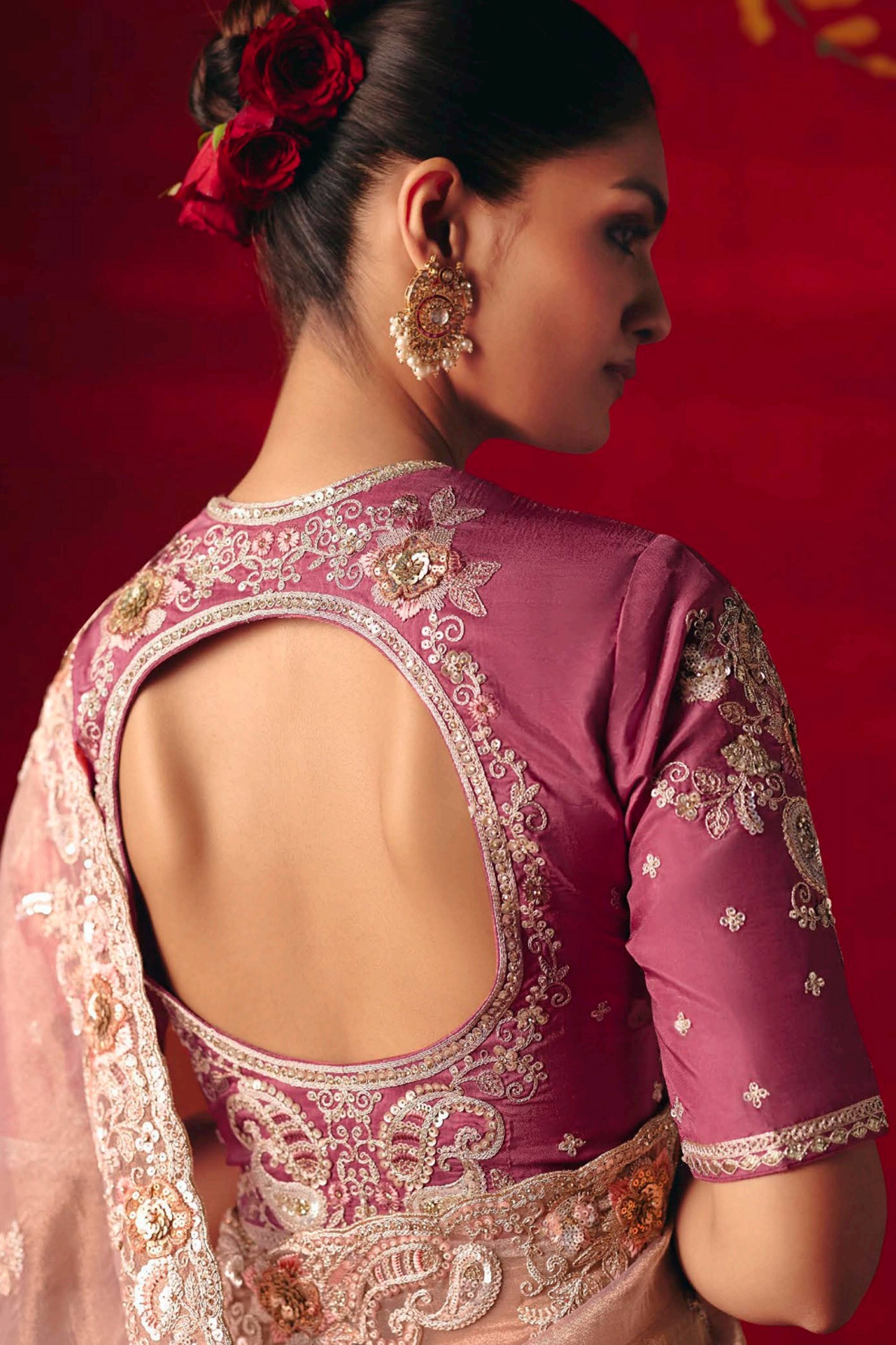 Art Silk Sequins Embroidered Pink Saree For Wedding Wear