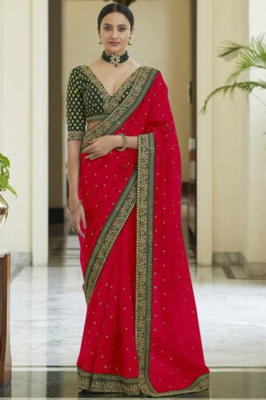 Art Silk Traditional Saree in Rani Pink with Embroidered work
