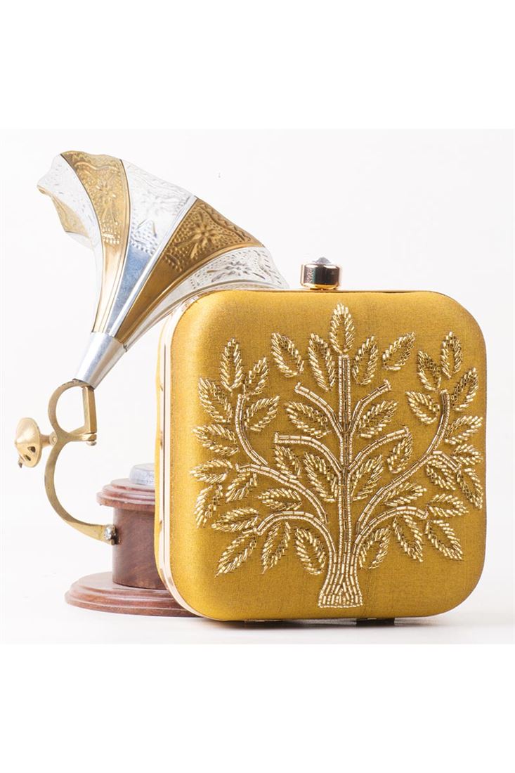 Art Silk Wondrous Clutch Purses For Function In Yellow Color