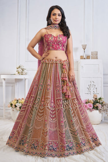Step into a world of elegance with the Stunning Embroidered Reach Color Wedding Wear Lehenga Choli. This set comes with a semi-stitched lehenga, unstitched blouse fabric, and a matching dupatta. The lehenga is designed for waists up to 44 inches and has a length of up to 42 inches, while the blouse offers 1 meter of fabric for a personalized fit. The dupatta measures 2.30 meters. Adorned with exquisite embroidery, this lehenga choli is perfect for weddings and festive celebrations.