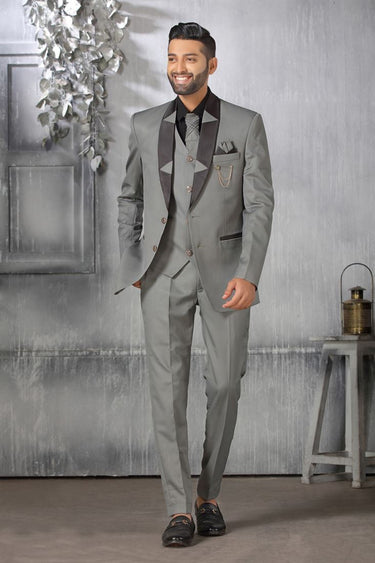 Attractive Grey Color Coat Suit In Cotton Fabric