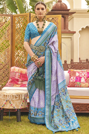 Attractive Lavender Color Printed Patola Art Silk Fabric Saree