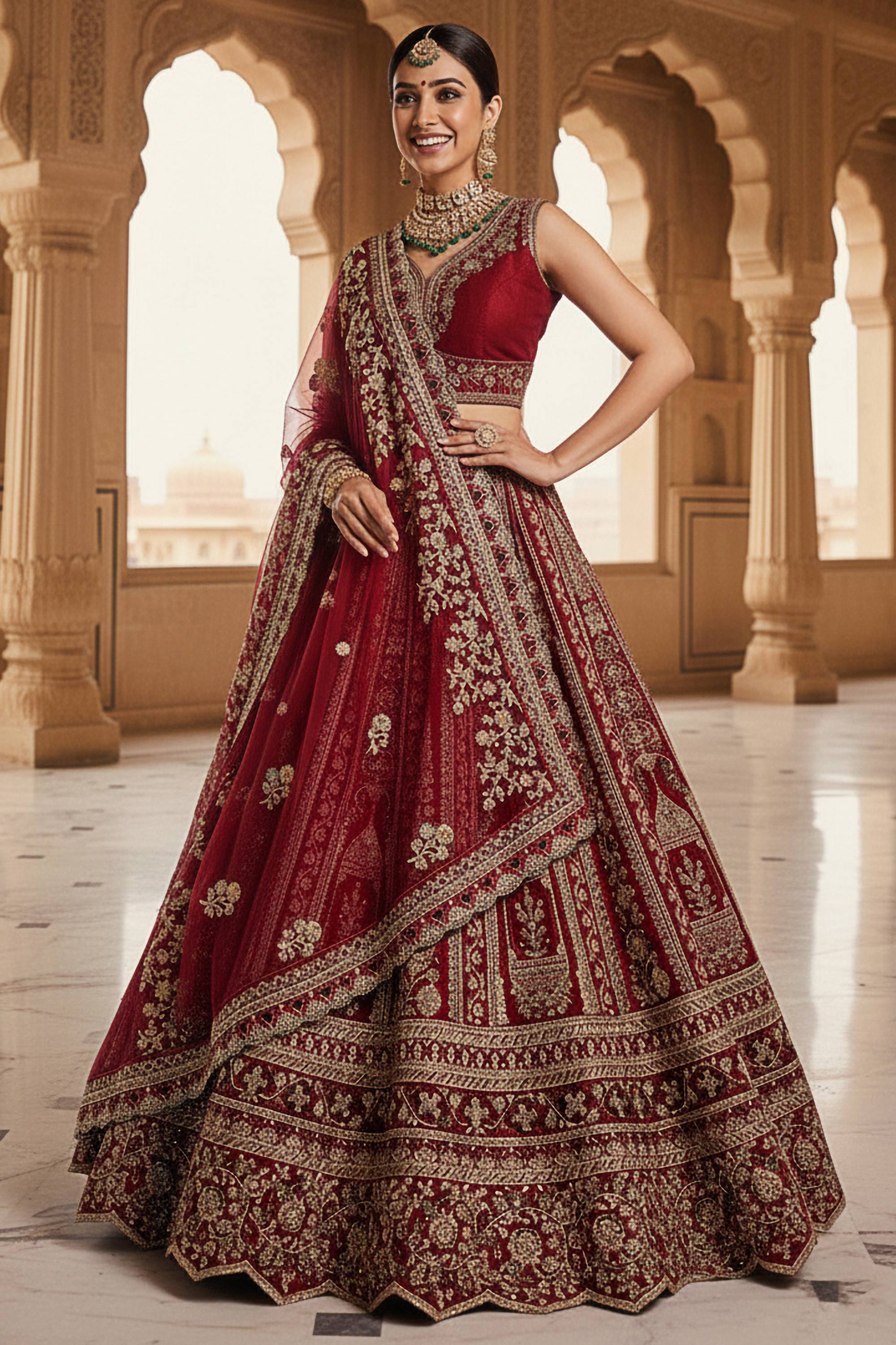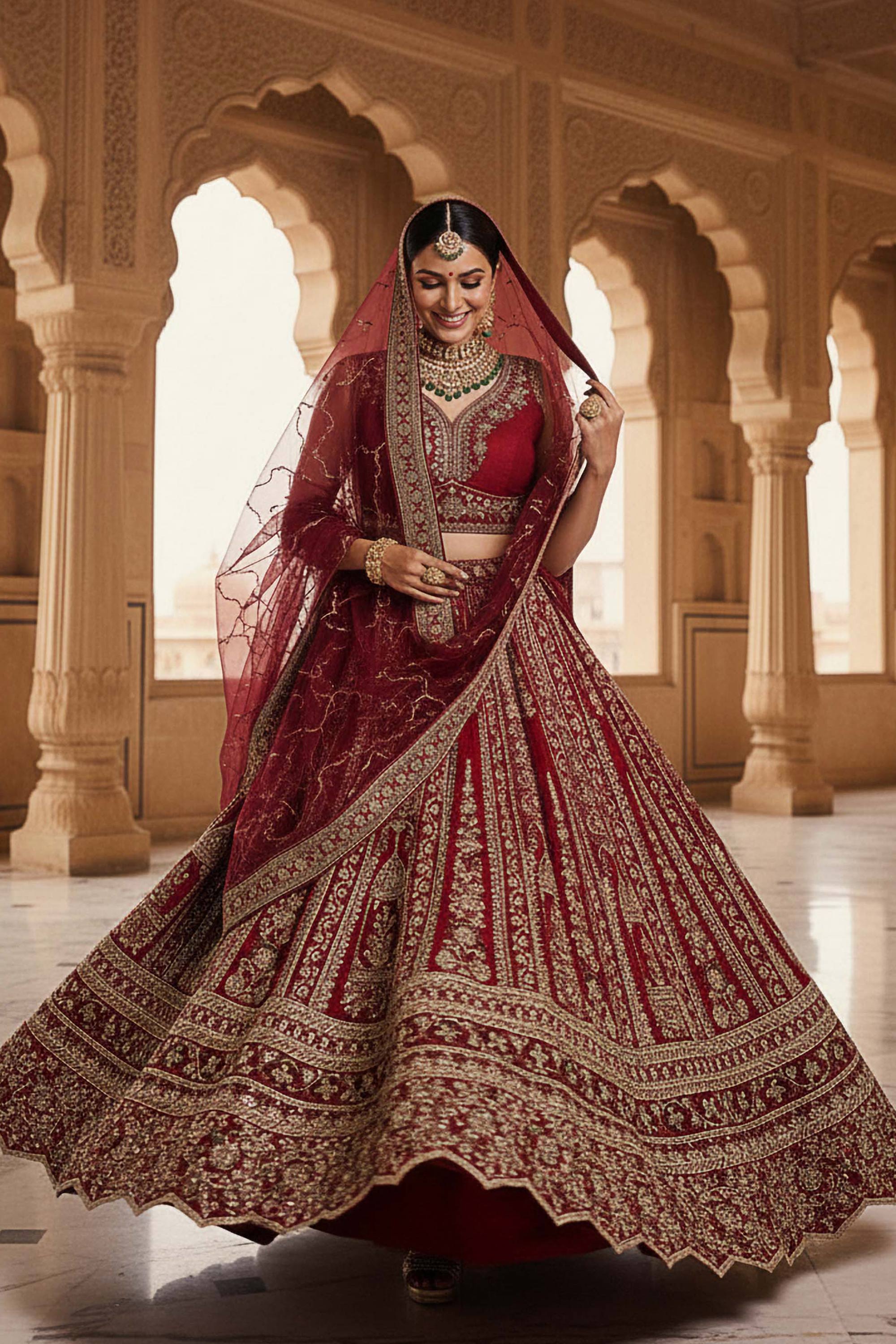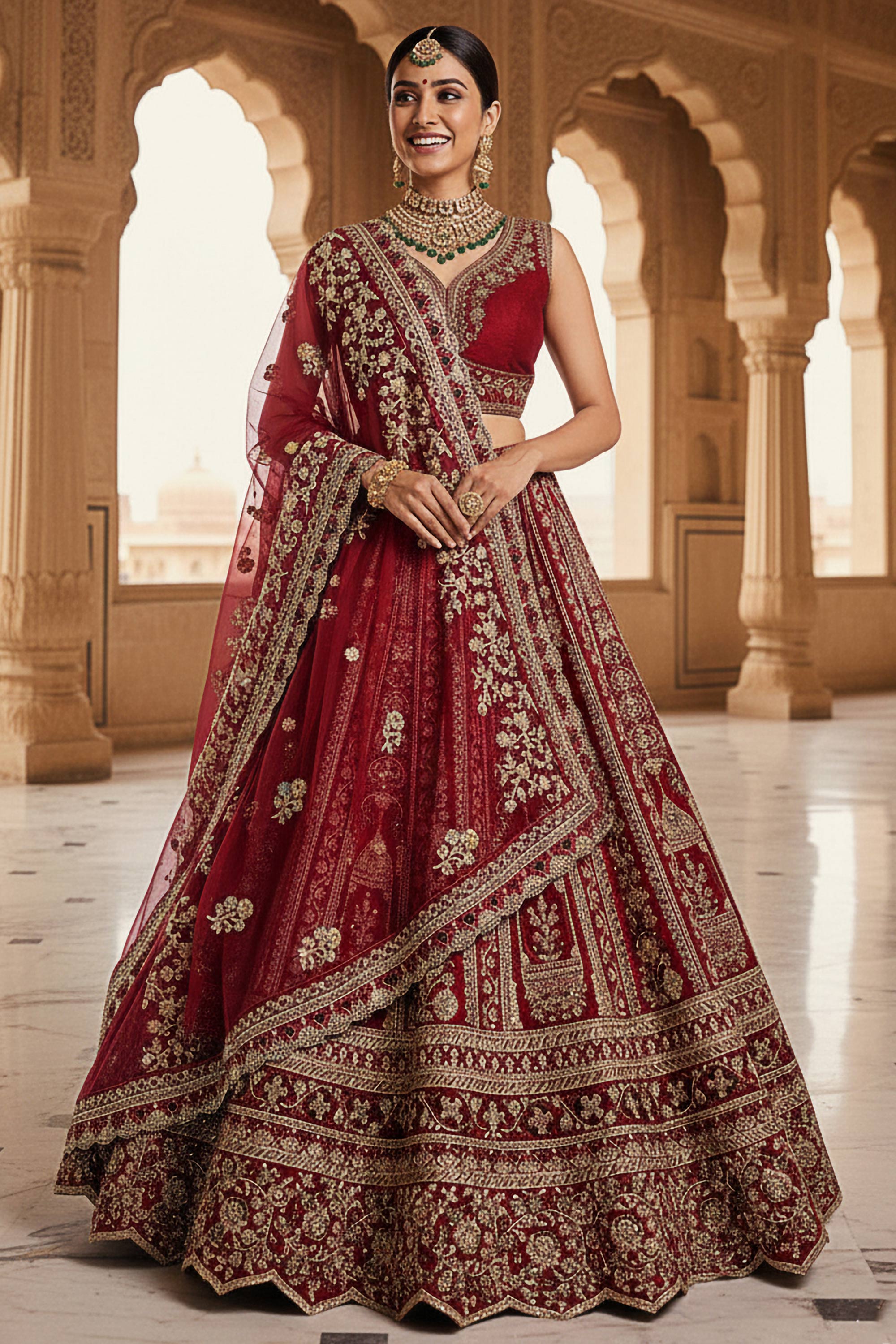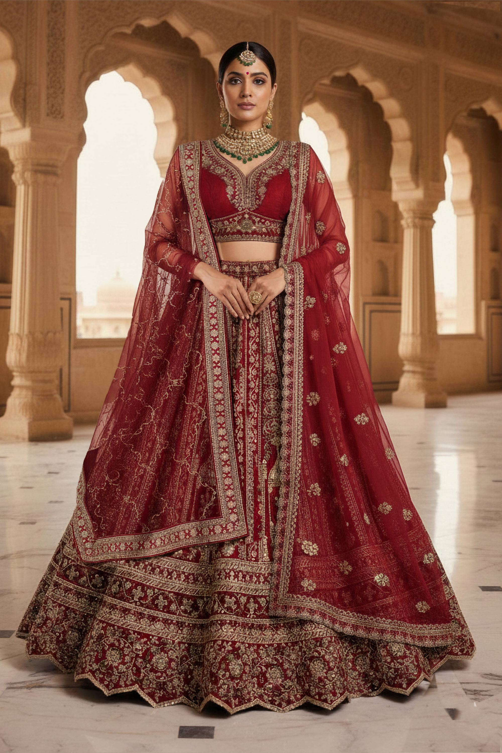 Attractive Red Silk Heavy Embroidered Bridal Lehenga Choli