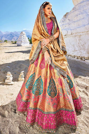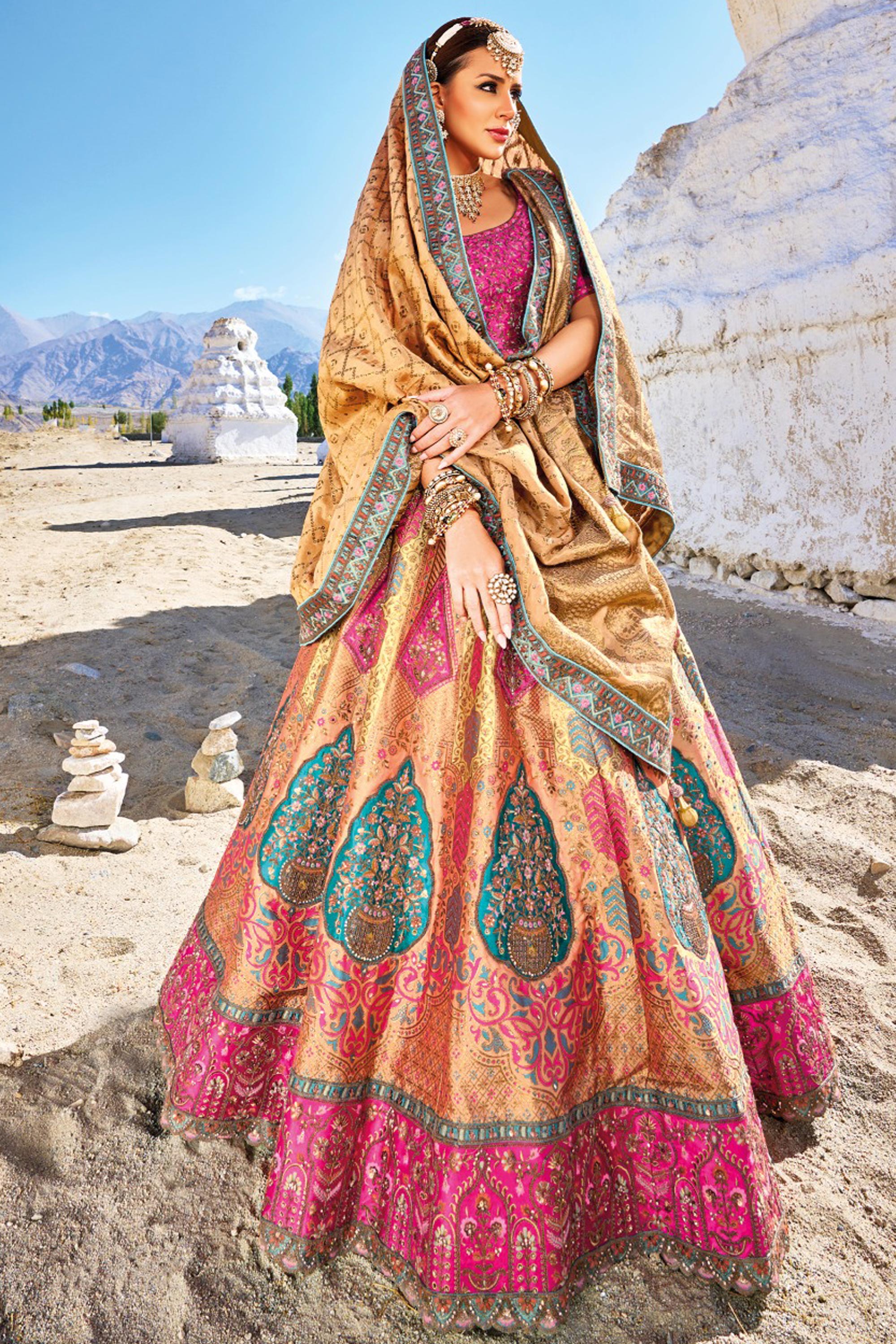 Banarasi Silk Fabric Bridal 3 Piece Lehenga Choli In Multi Color With Embroidery Work