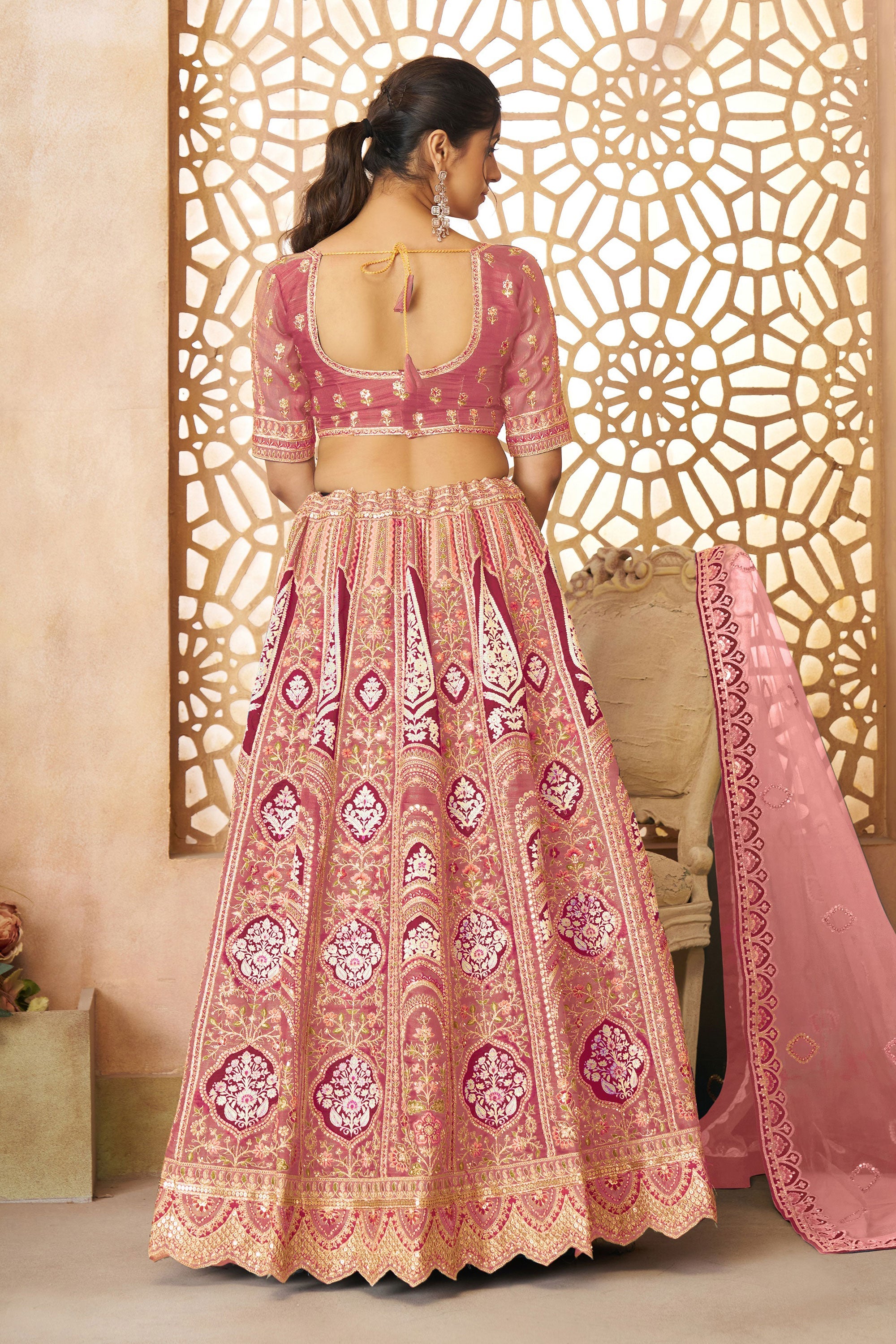 Banarasi Silk Pink Heavy Embroidered Designer Lehenga Choli