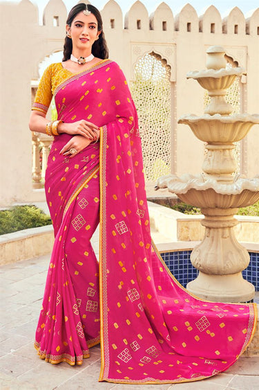 Bandhani Style Pink Color Appealing Chiffon Saree