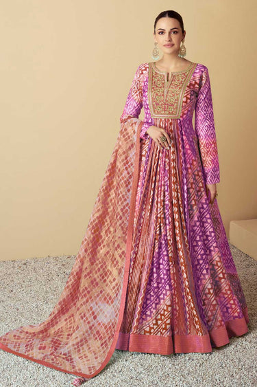 Beautiful Muslin Fabric Readymade Anarkali Style Gown With Dupatta
