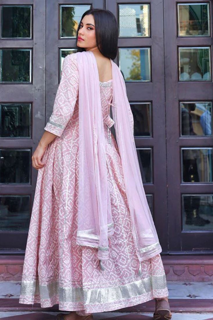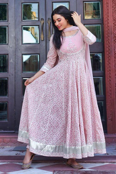 Beguiling Cotton Readymade Top Bottom Dupatta Set in Pink Color