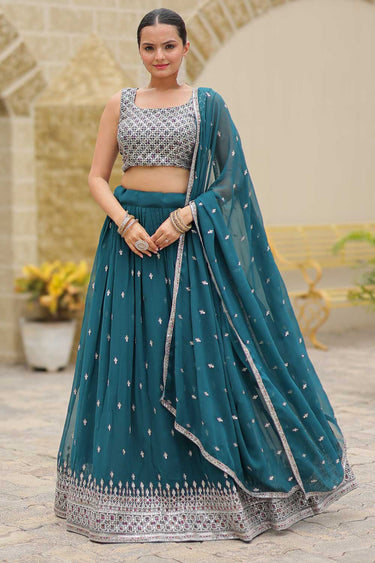 Beguiling Function Style Teal Color Georgette Fabric Lehenga