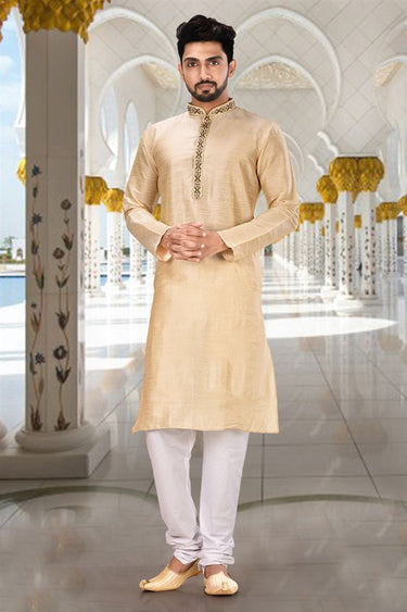 Beige Color Art Silk Fabric Function Wear Readymade Kurta Pyjama For Men