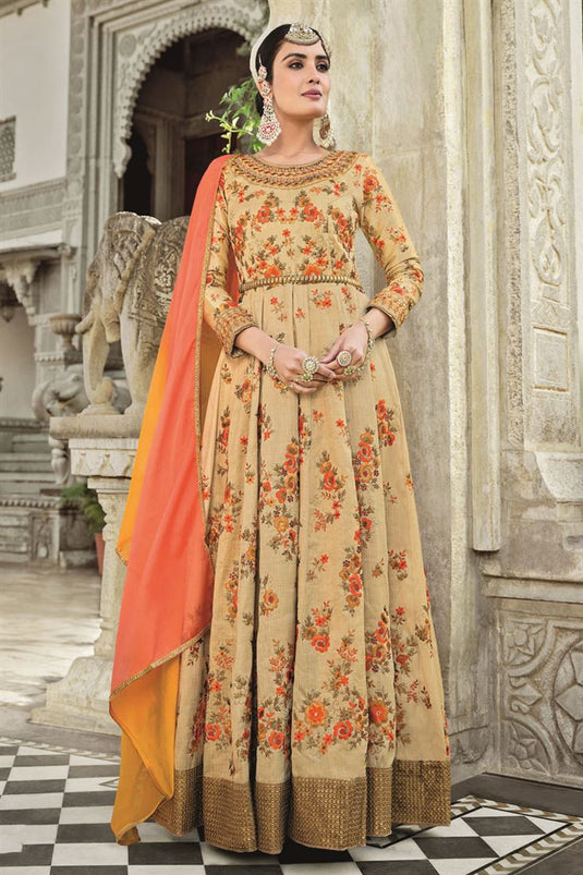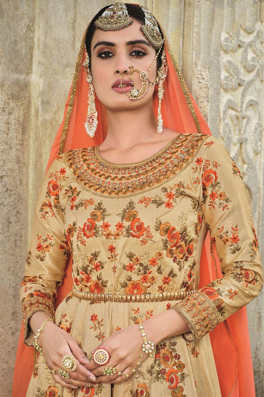 Beige Color Embroidered Work Art Silk Fabric Function Wear Tempting Anarkali Suit