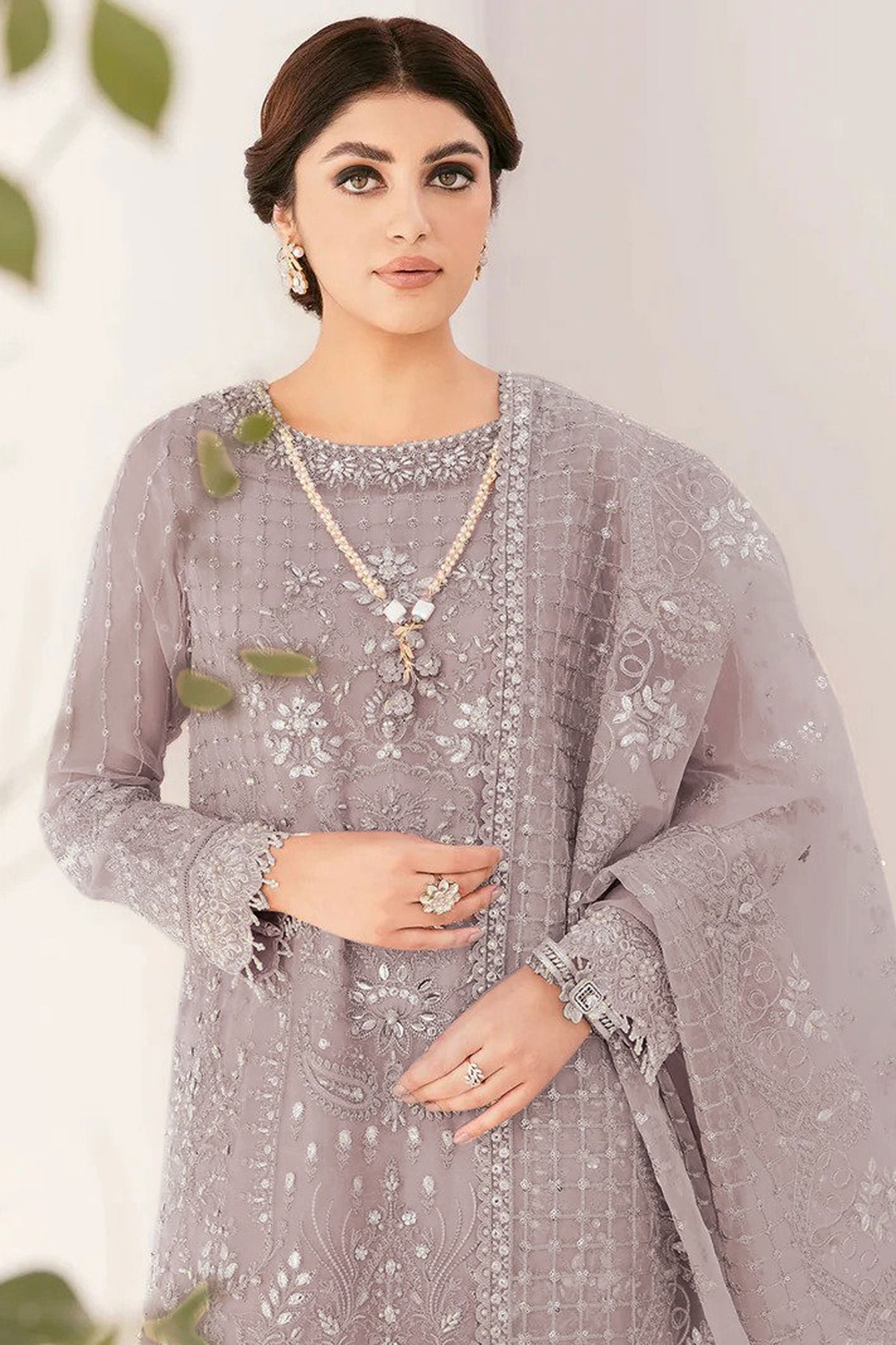 Step into the spotlight with this sparkling Sequins Work Inventive Pakistani Replica Suit in high-quality Organza Fabric. Exhibiting a gorgeous display of glittering sequins, this suit encapsulates the perfect blend of tradition and modernity. Dress to impress on any special occasion or gala with this exquisite, elegant, and trendy suit.