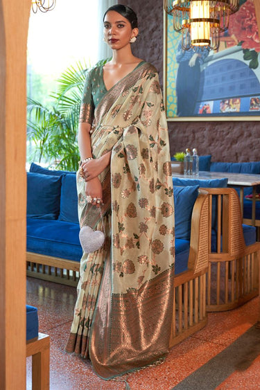 Beige Color Organza Shimmer Silk Saree