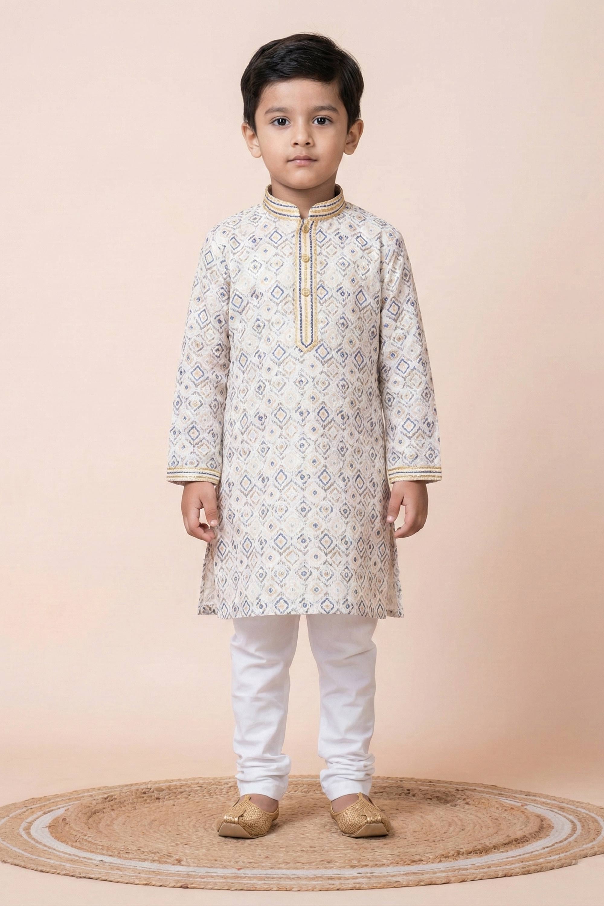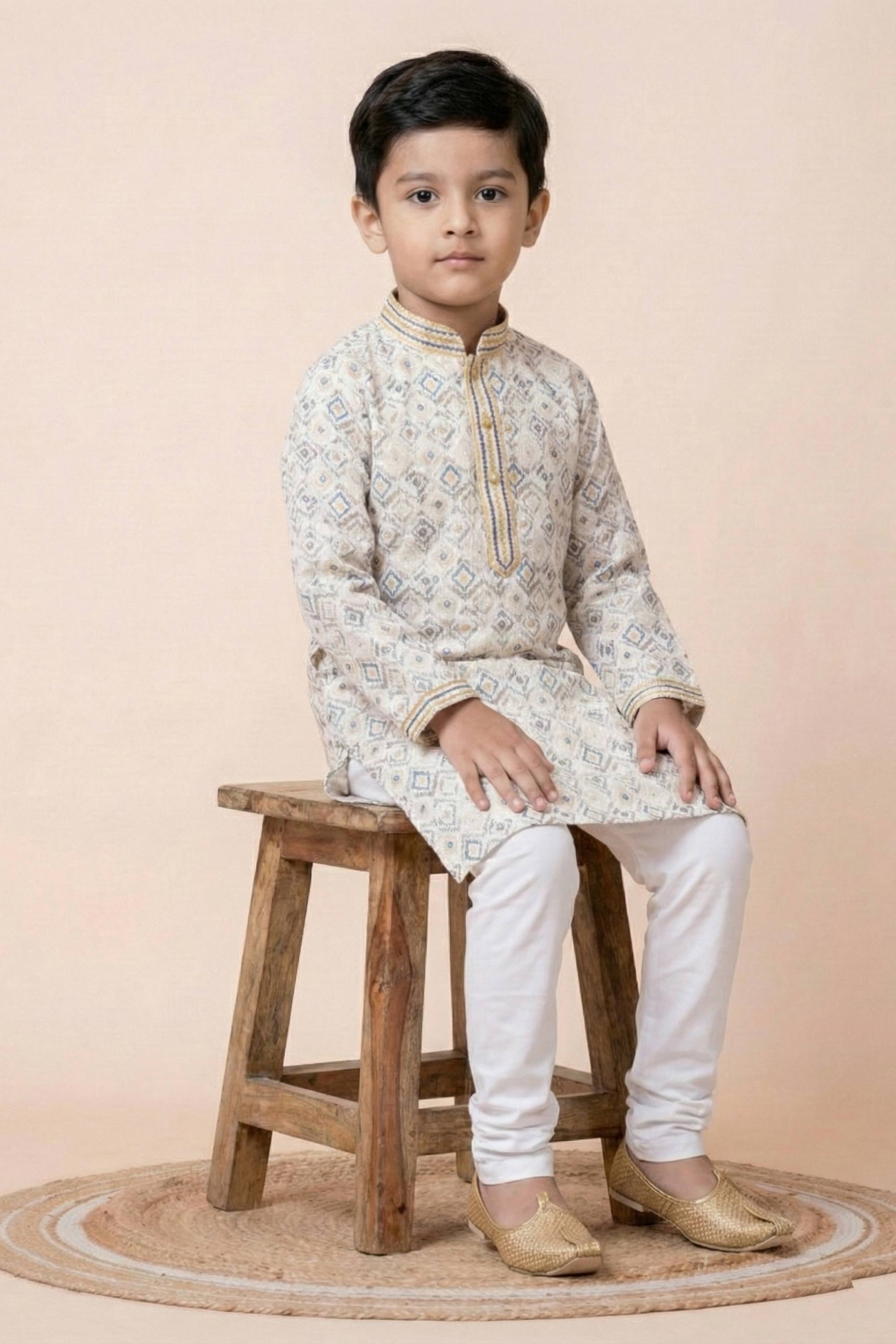 Beige Festive Wear Cotton Fabric Readymade Kurta Pyjama For Boys
