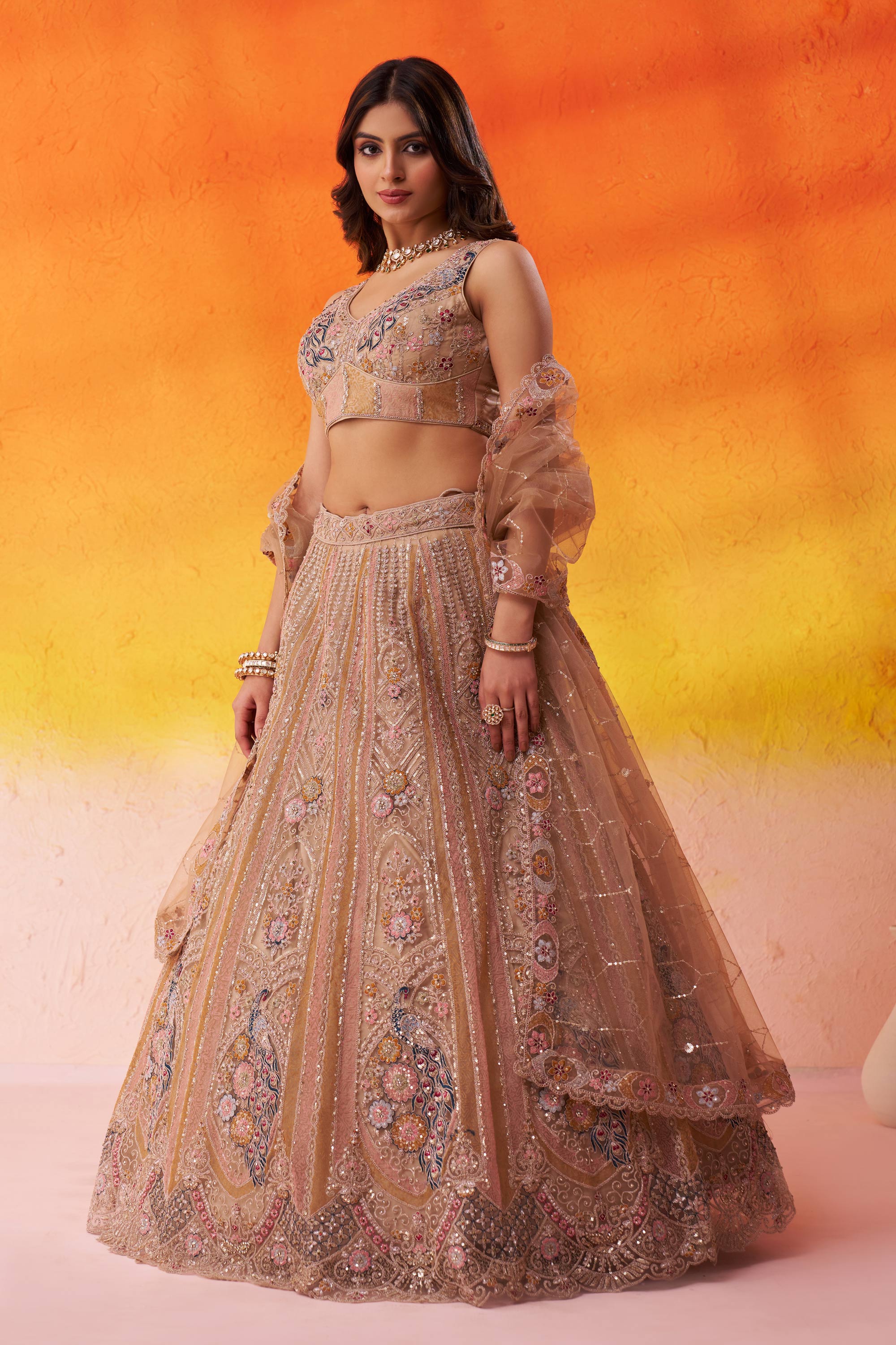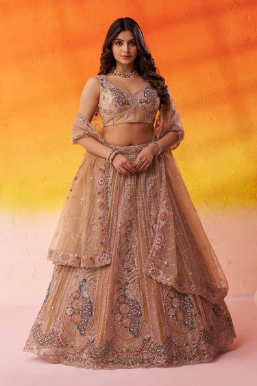 Beige Net Fabric Embroidered Wedding Wear Lehenga Choli