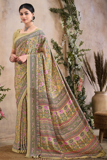 Beige Premium Crepe Silk Teachers Uniform Saree