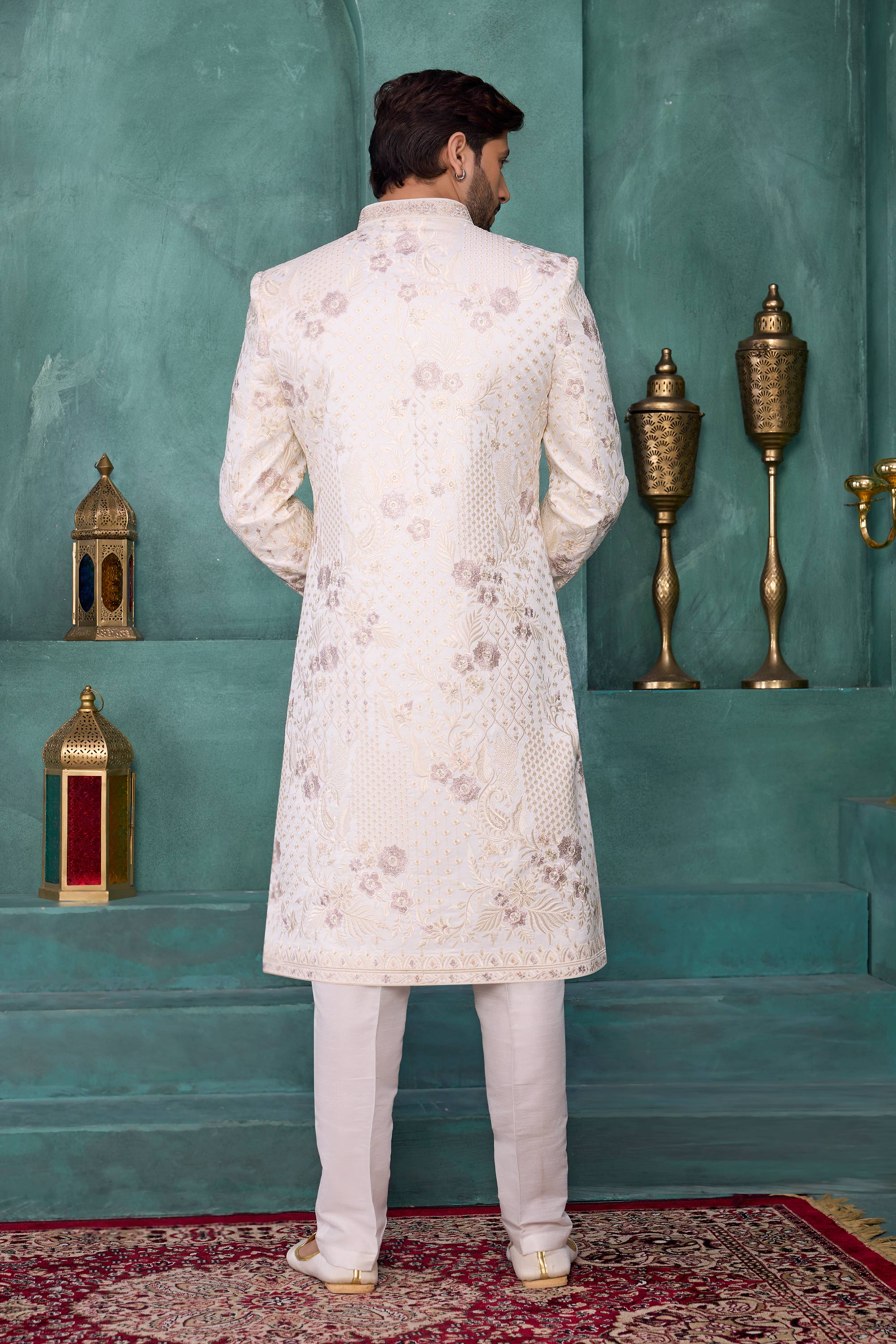 Step into timeless elegance with this stylish Mens Sherwani, designed to elevate your wedding look. Crafted with premium Art Silk featuring detailed computer thread embroidery, the sherwani offers a rich texture and royal appearance. The classic Reach Color enhances its festive charm, making it perfect for wedding occasions. Due to digital photography, slight color variations may occur.