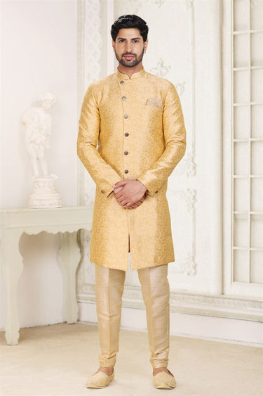 Beige Wedding Wear Readymade Glamorous Indo Western For Men In Banarasi Jacquard Fabric