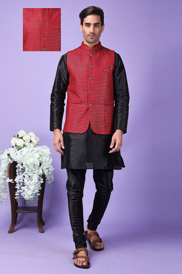 Look exquisite at any event with this Gorgeous Reach Color Polyster Silk Fabric Readymade Kurta Pyjama for Men, equipped with a 3-piece embroidered jacket set. Its aesthetic design reflects elegance and opulence. The Modi Jacket set, known for its versatility and charm, accentuates the outfit’s beauty. The suit is available in sizes 38, 40, 42, 44. Step into style and class today. Perfect for festivities, parties or any other occasions.