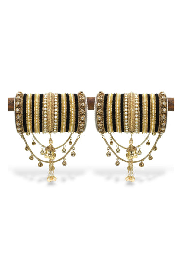 Black Color Alloy Material Coveted Bridal Jhoola Style Bangle Set For Two Hands