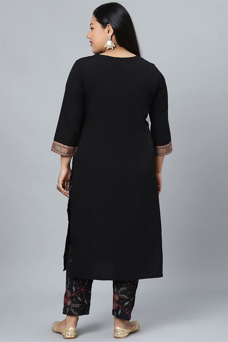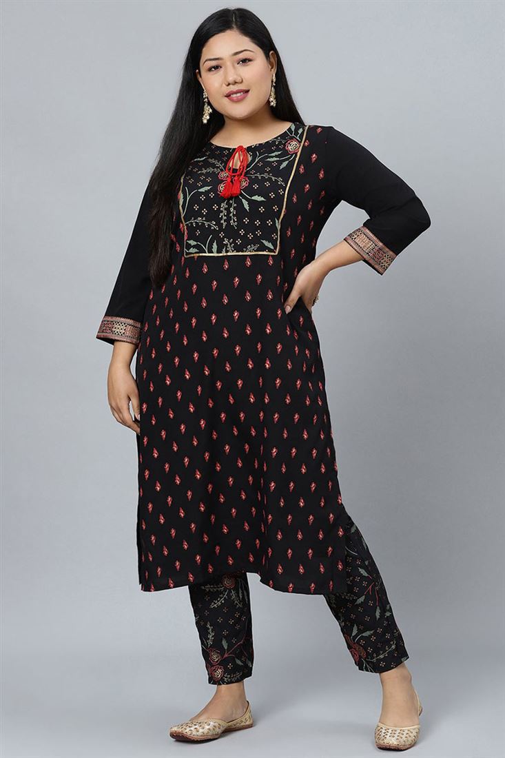 Black Color Casual Fancy Readymade Plus Size Kurti With Bottom