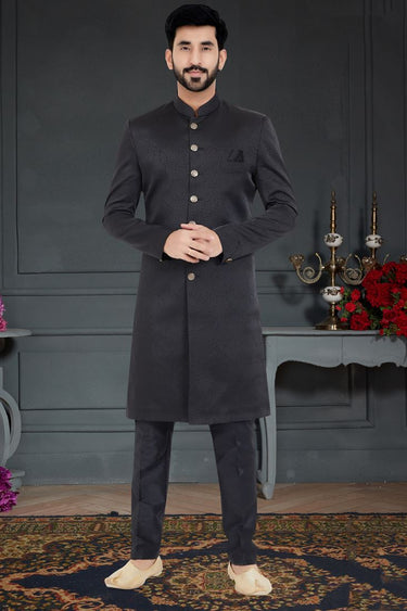 Black Color Engrossing Italian Indo Western In Satin Fabric