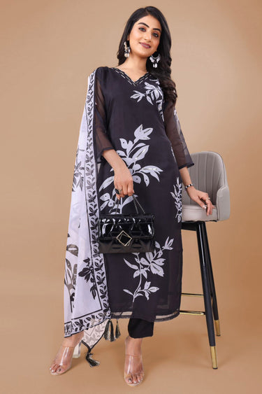 Black Color Function Wear Embroidered Readymade Salwar Suit In Organza Fabric