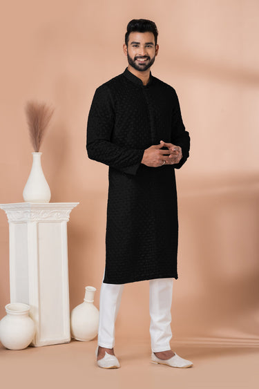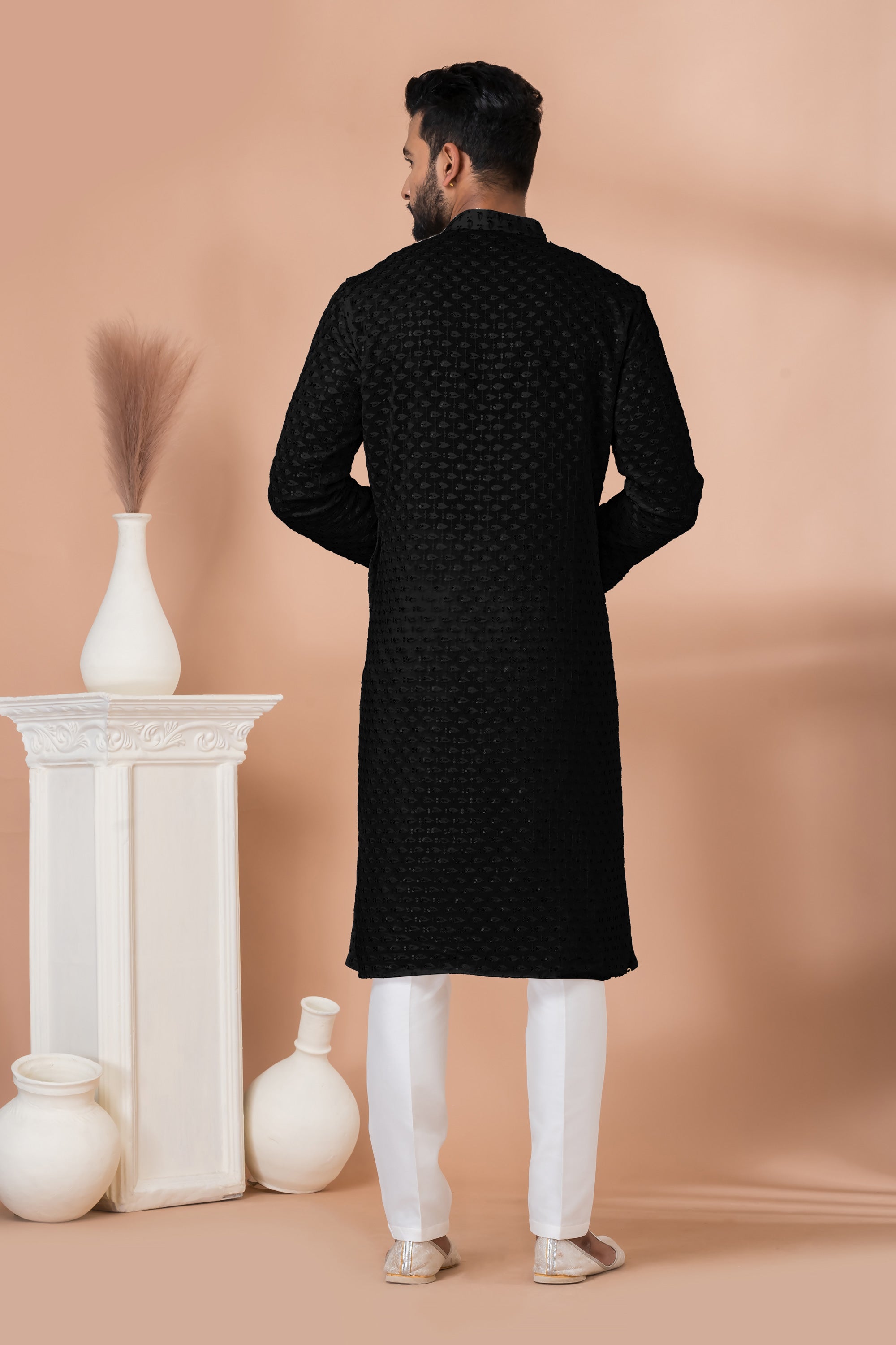 Black Color Stunning Georgette Fabric Readymade Kurta Pyjama For Men