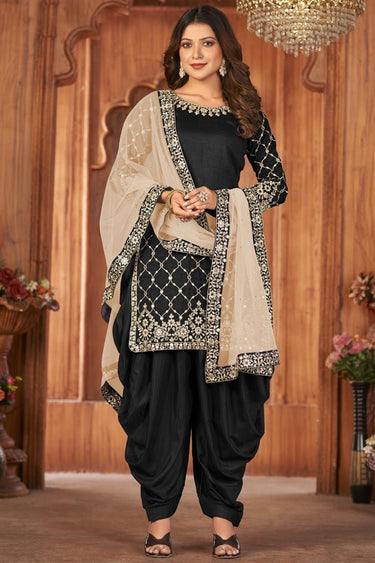 Black Color Tempting Festive Look Patiala Suits In Art Silk Fabric