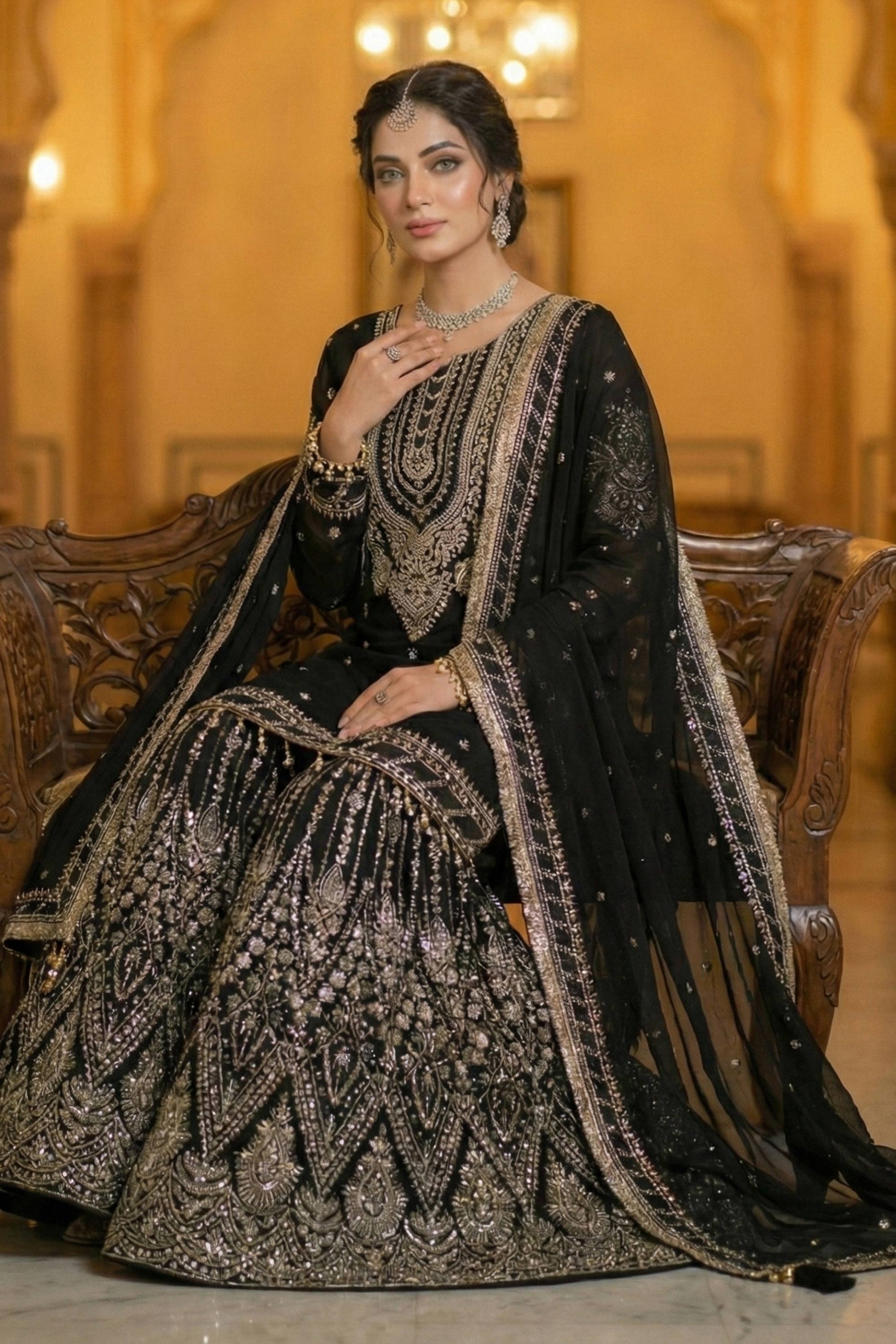 Black Festive Wear Georgette Embroidered Readymade Palazzo Suit