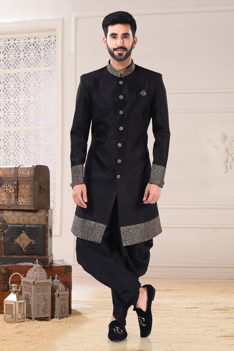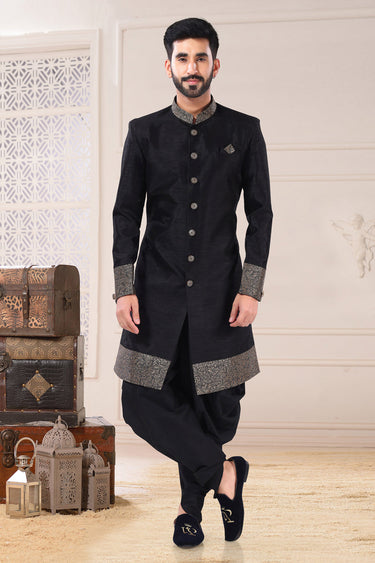Black Silk Fabric Graceful Readymade Men Indo Western For Wedding Wear