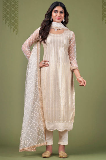 Blazing Cream Color Sequins Work Net Salwar Suit