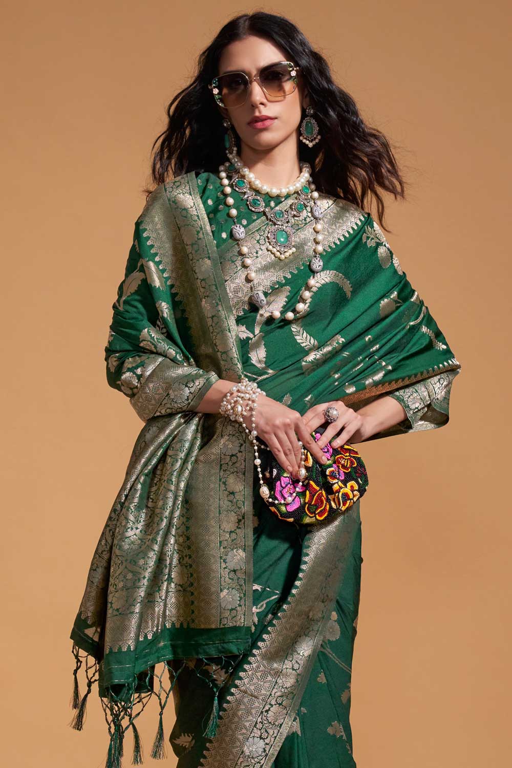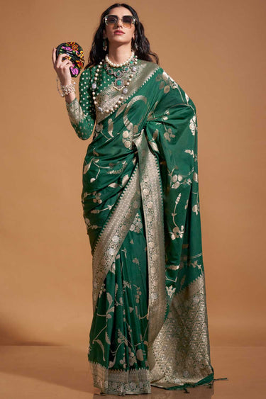 Blazing Dark Green Color Weaving Work Georgette Saree