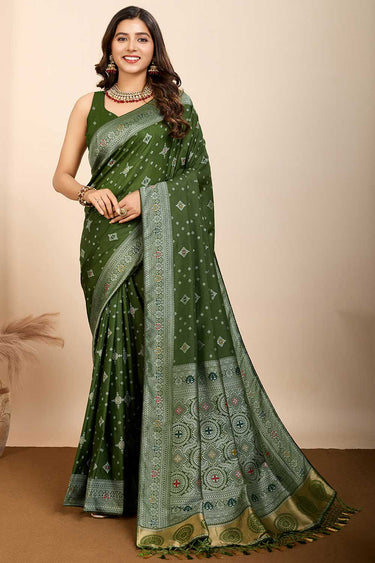 Blazing Olive Color Woven Meenakari Art Silk Saree