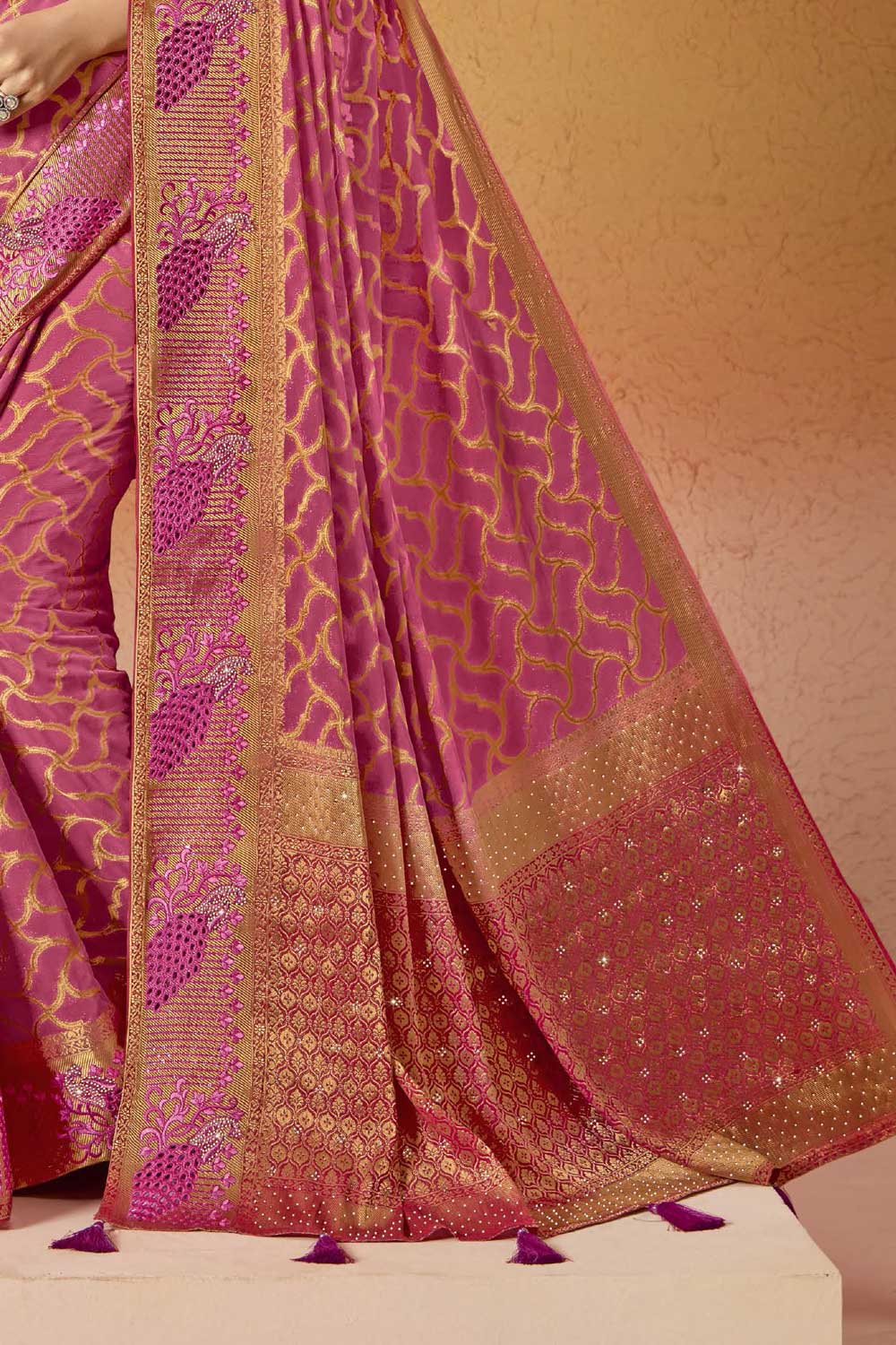 Introducing our Designer Georgette Saree, a stunning blend of elegance and tradition. Crafted from lightweight Georgette fabric, this saree drapes effortlessly, offering both comfort and grace. The saree is adorned with intricate embroidery work, giving it a touch of sophistication, perfect for special occasions. Paired with a luxurious Silk blouse, this ensemble exudes timeless beauty. Please note, slight color variations may occur due to lighting conditions, adding a unique charm to each piece. Elevate your wardrobe with this exquisite saree, designed to make you shine at every event!