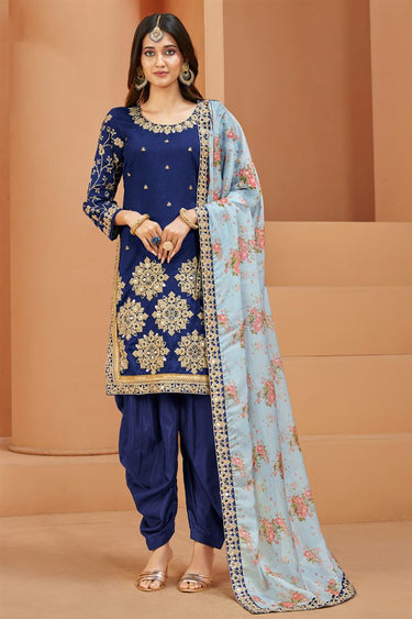 Blue Art Silk Embroidered Mirror Work Patiala Suit Function Wear